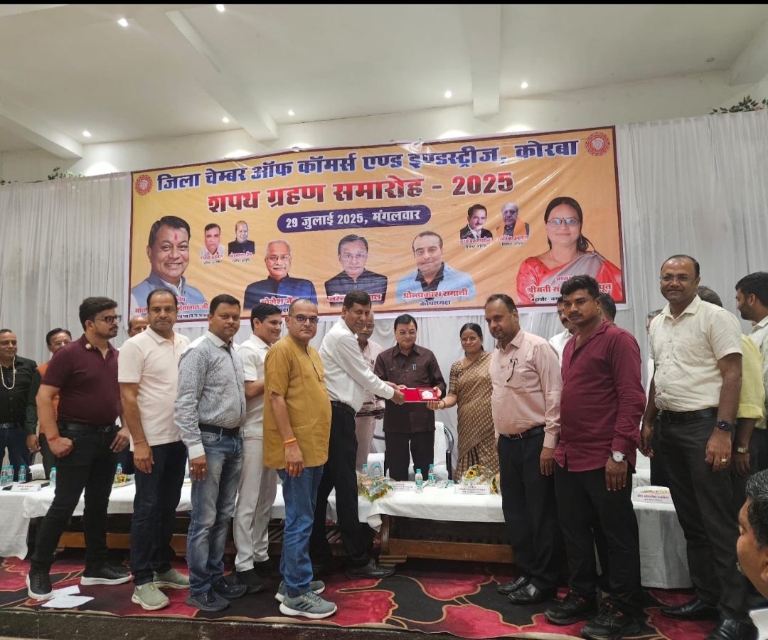 कोरबा । जिला चेम्बर ऑफ कॉमर्स एण्ड इण्डस्ट्रीज कोरबा का शपथ ग्रहण समारोह आशीर्वाद पाइन्ट में भव्य रूप से सम्पन्न हुआ।