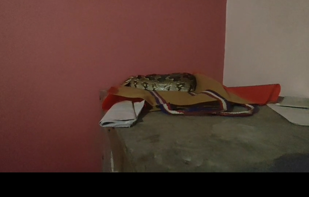 कूलर के ऊपर बैठा था भरी भरकम अजगर, लाइट नहीं होने के कारण मोबाइल के टॉर्च के सहारे जोखिम भरा खतरनाक रेस्क्यु।