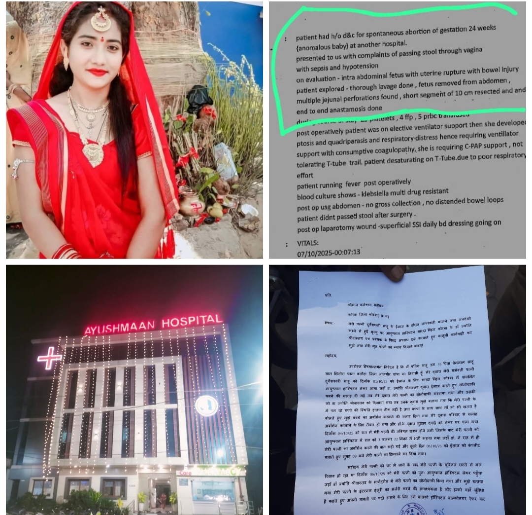 कोरबा: आयुष्मान हॉस्पिटल में गर्भवती महिला की मौत, डॉक्टरों पर गंभीर लापरवाही का आरोप; परिजनों ने कलेक्टर से लगाई न्याय की गुहार