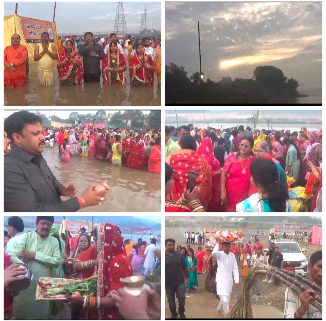 सर्वमंगला घाट में छठ पूजा के दौरान श्रद्धा और भक्ति का अद्भुत संगम देखने को मिला। डूबते और उगते सूर्य को अर्घ्य देने के दौरान घाट पर भजन, दीपक और आतिशबाजी से पूरा वातावरण भक्तिमय हो गया महिलाओं ने छठ गीत गाते हुए सूर्य भगवान और छठी मैया से अपने परिवार की सुख-समृद्धि की प्रार्थना की महापौर राजपूत ने कहा छठ पर्व भारतीय संस्कृति की पवित्र परंपरा का प्रतीक है जो समाज में अनुशासन समर्पण और आस्था का संदेश देता है। नगर निगम हर साल श्रद्धालुओं की सुविधाओं को ध्यान में रखकर इस आयोजन को सफल बनाने का पूरा प्रयास करहै।