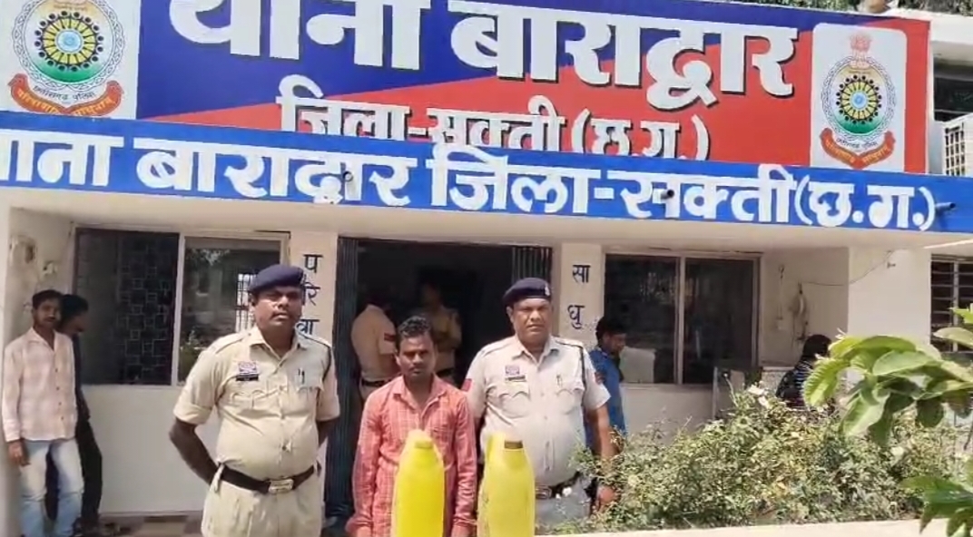 Samachar Chhattisgarh :जिला शक्ति घटना का विवरण – मामले का विवरण इस प्रकार है कि पुलिस अधीक्षक सक्ती सुश्री अंकिता शर्मा महोदया द्वारा क्षेत्र मे अवैध जुआ, गांजा व शराब बिक्री एवं परिवहन करने वाले आपराधियो पर अंकुश लगाने हेतु अधिक से अधिक कार्यवाही करने की निर्देश पर  अतिरिक्त पुलिस अधीक्षक महोदय,  हरीश यादव जी, अनुविभागीय अधिकारी (पुलिस)  मनीष कुंवर सक्ती के मार्गदशन पर थाना प्रभारी निरीक्षक लखन पटेल थाना बाराद्वार   मुखबीर की सुचना पर राजाभांठा बेल्हाडीह में टीम बनाकर रेड कार्यवाही कर आरोपी मनोज कुमार रात्रे पिता कांशी राम रात्रे उम्र 45 वर्ष साकिन राजाभांठा बेल्हा्डीह थाना बाराद्वार जिला सक्ती के कब्जे से 10 लीटर हांथ भंटटी से बना कच्ची महुआ शराब कीमती 1000 रूपये को जप्त किया गया जिसे आबकारी एक्ट के प्रावधानो के तहत विधिवत कार्यवाही कर आबकारी अधिनियम का सबुत पाये जाने से आरोेपी को गिरफ्तार कर रिमांड पर मान.न्यायालय पेश किया गया।