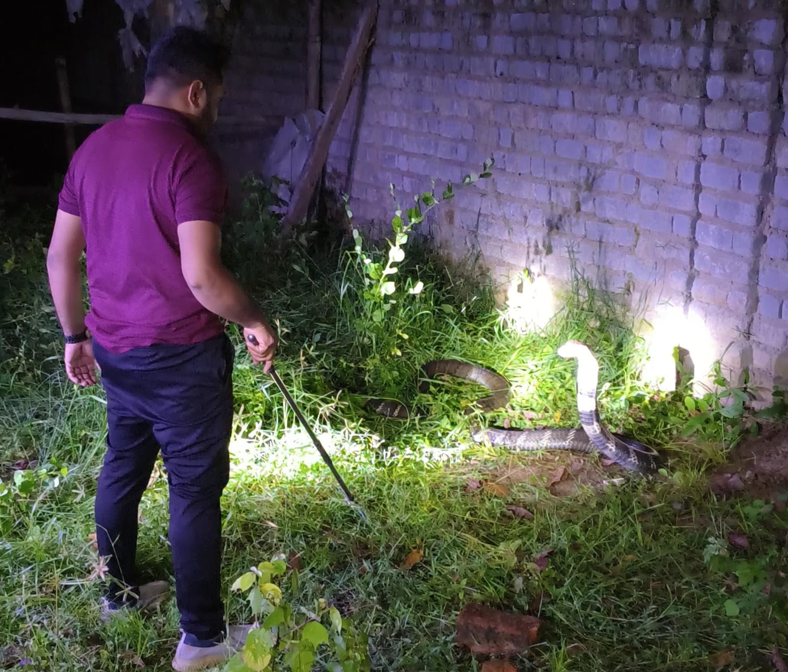 मदन पुर गाँव मे एक घर के आँगन मे मिला विशाल किंग कोबारावन मॅडल ओर रेस्क्यू टीम जितेंद्र सारथी ने सुरक्षित रेस्क्यू कर