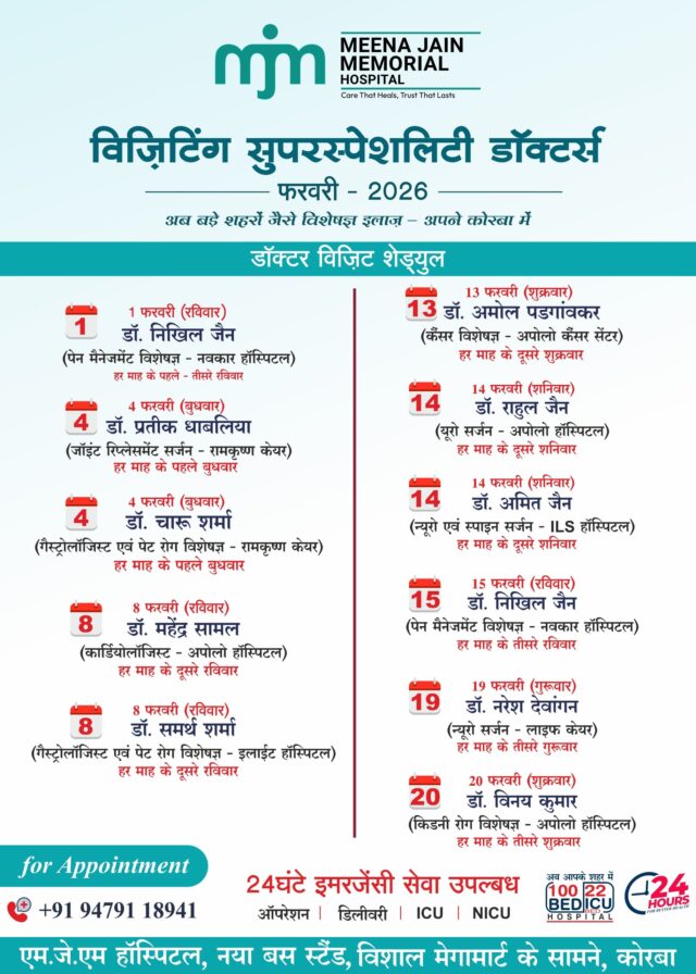 📍 एम.जे.एम मल्टीस्पेशलिटी हॉस्पिटल, कोरबा