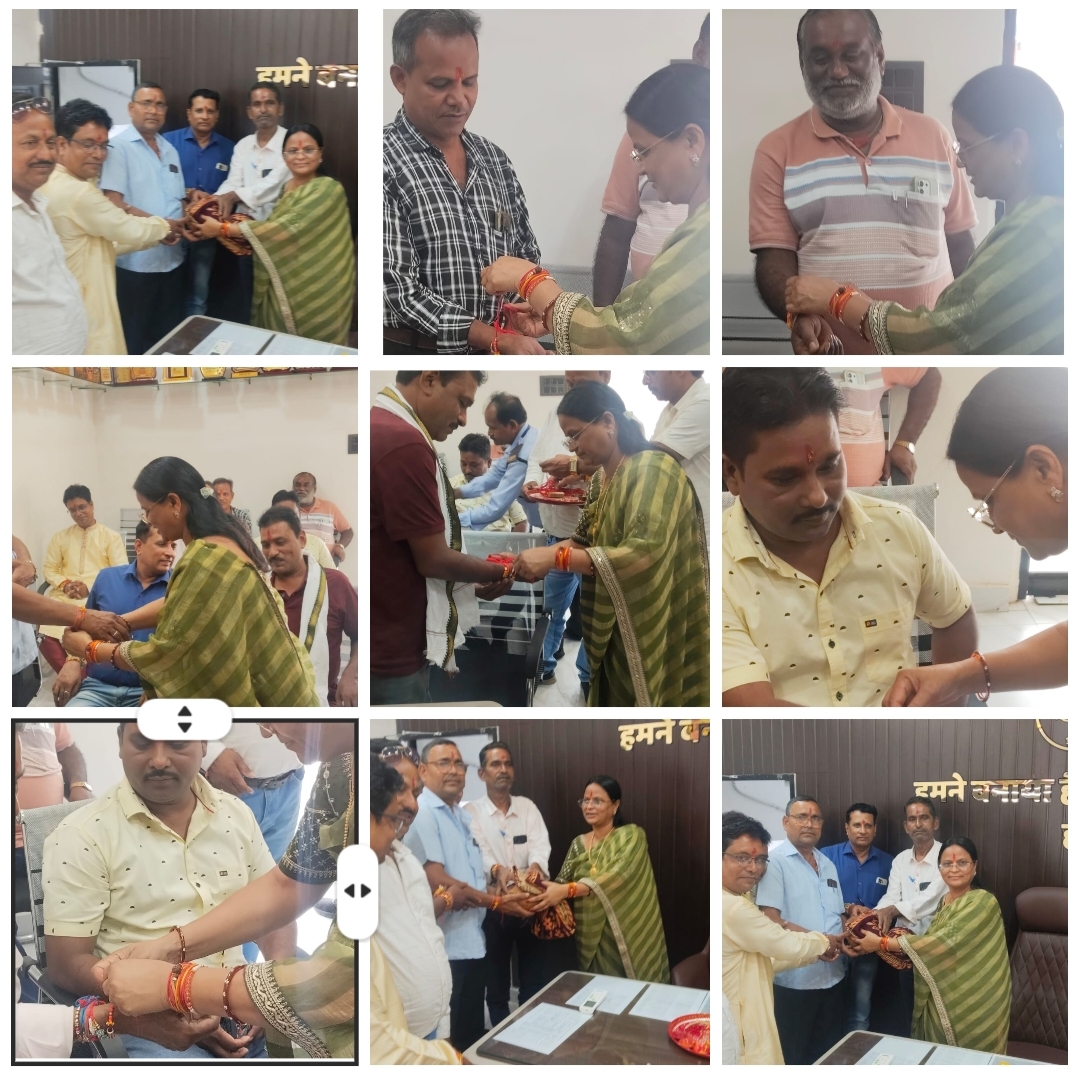 रक्षाबंधन के पर्व को महापौर के निवास स्थान पर असंगठित विद्युत कामगार कल्याण की समिति के सदस्य को माथे पर तिलक ओर आरती उतारकर राखी का त्यौहार बड़ी धूमधाम से मनाई