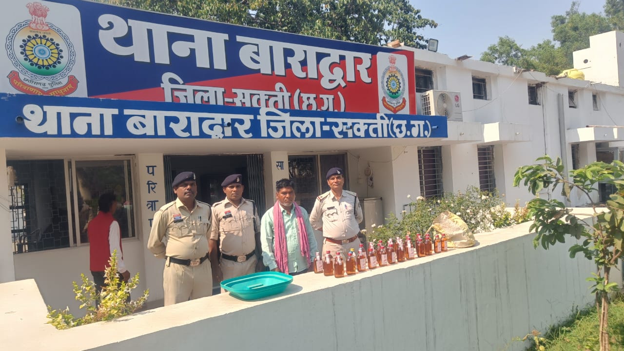 Samachar Chhattisgarh : घटना का विवरण – मामले का संक्षिप्त विवरण इस प्रकार है कि पुलिस अधीक्षक सक्ती सुश्री अंकिता शर्मा द्वारा क्षेत्र मे अवैध जुआ , गांजा, व शराब बिक्री एवं परिवहन करने वाले आपराधियो पर अकुंश लगाने हेतु अधिक से अधिक कार्यवाही करने की निर्देश पर अतिरिक्त पुलिस अधीक्षक हरीश यादव जी, अनुविभागीय अधिकारी (पुलिस) मनीष कुंवर सक्ती के मार्गदशन पर थाना प्रभारी निरीक्षक लखन पटेल थाना बाराद्वार दिनांक को मुखबीर की सुचना पर ग्राम कडारी आरोपी के घर सामनें में टीम बनाकर रेड कार्यवाही कर आरोपी रामफल चैहान पिता स्व. झूलसाय चैहान उम्र 46 वर्ष निवासी कडारी थाना बाराद्वार जिला जांजगीर चांपा (छग) के कब्जे से .एक मटमैला रंग की प्लास्टिक थैला के अंदर अंग्रेजी जम्मु शराब कीमती 3600 रू. एवं 10 पाव देशी प्लेन मदिरा शराब सभी 180 एम.एल. भरी हुई जुमला कीमती 4400 रूपये,जप्त कर आबकारी एक्ट के प्रावधानो के तहत विधिवत कार्यवाही कर आबकारी अधिनियम का सबुत पाये जाने से आरोेपी को गिरफ्तार कर रिमांड पर मान.न्यायालय पेश किया गया।