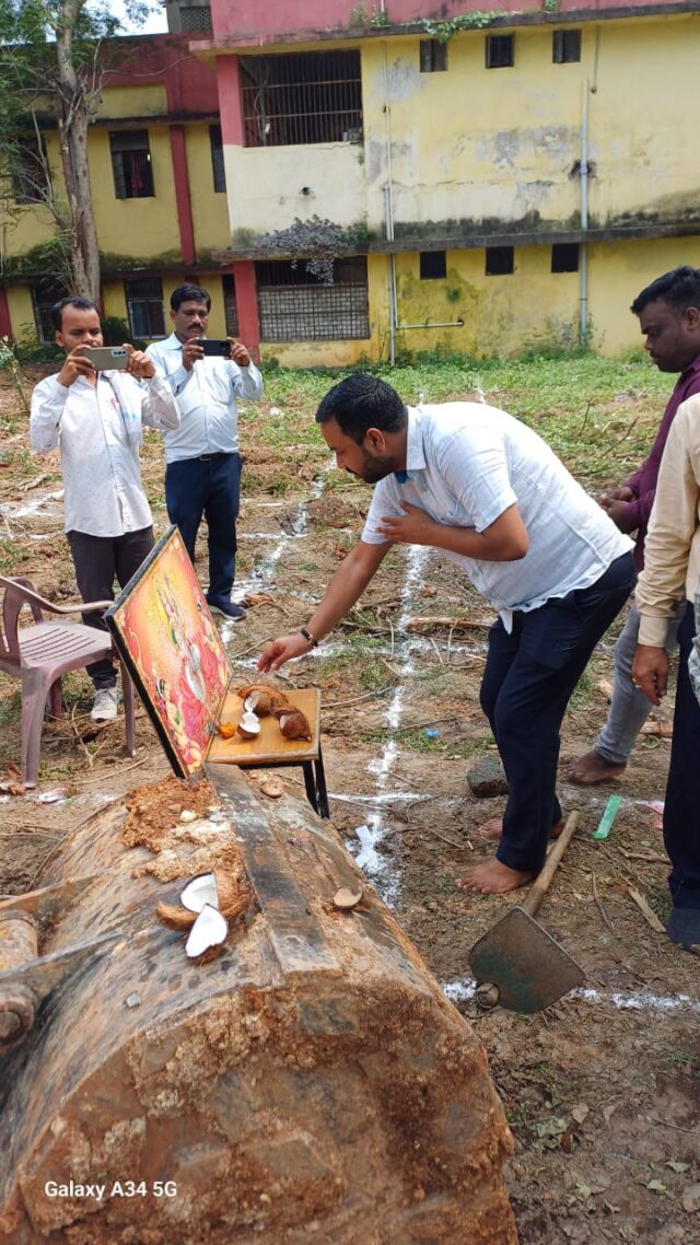 शासकीय इंजीनियरिंग विश्वेश्वरैया स्नातकोत्तर महाविद्यालय कोरबा में अतिरिक्त कक्ष का निर्माण कार्य भूमि पूजन वार्ड पार्षद चंद्रलोक ने किया का
