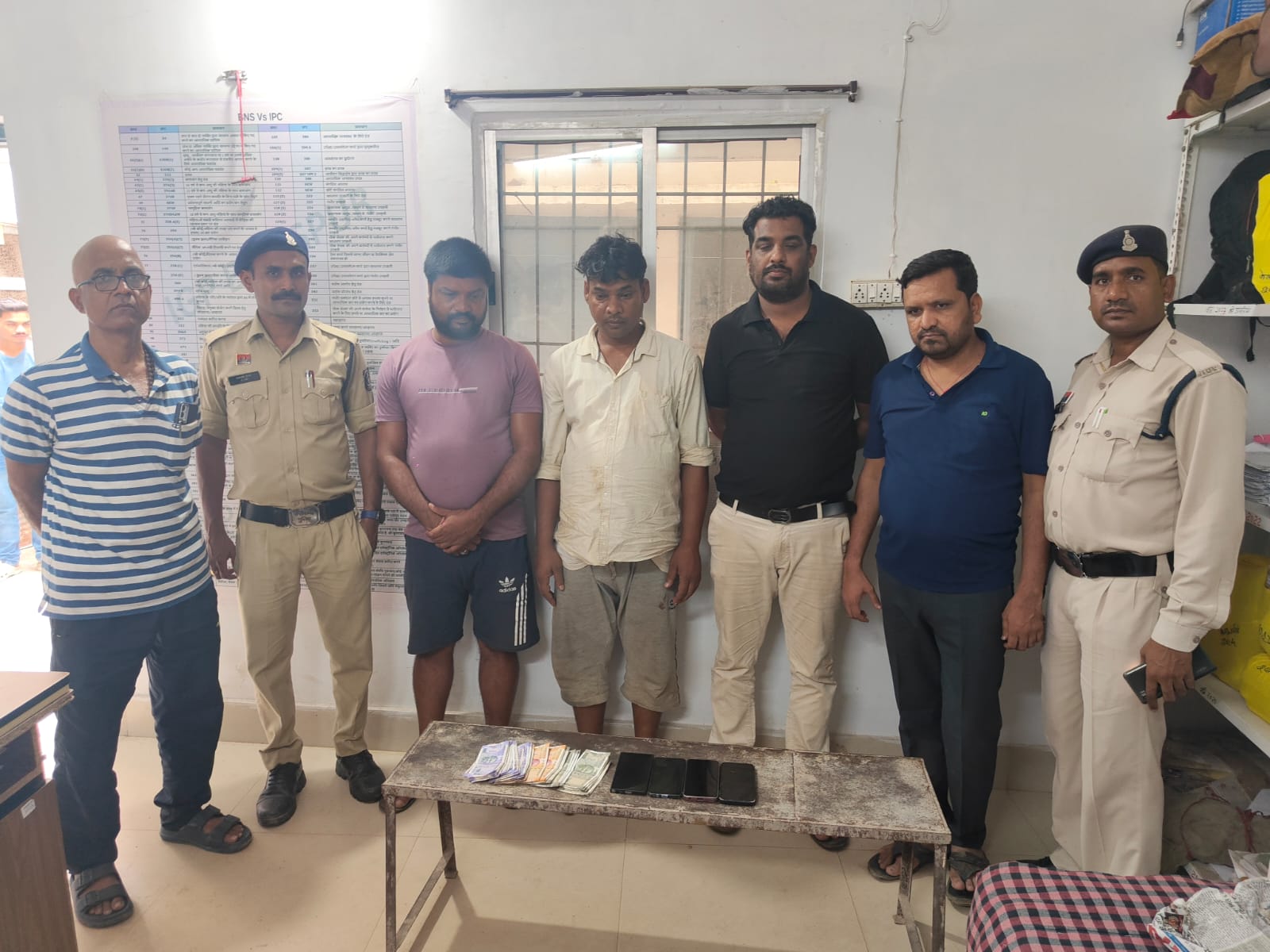 Samachar Chhattisgarh Korba.मामले का संक्षिप्त विवरण इस प्रकार है कि पुलिस अधीक्षक सुश्री अंकिता शर्मा द्वारा अवैध जुआ/सट्टा तथा नशे के कारोबारियों के विरूद्ध विशेष अभियान चलाकर प्रभावी कार्यवाही करने के दिये गये दिशा निर्देशों के परिपालन में अतिरिक्त पुलिस अधीक्षक हरिश यादव एवं अनुविभागीय अधिकारी(पुलिस) मनीष कुंवर के मार्गदशन में सक्रिय मुखबिर तैनात कर सूचना संकलन किया जा रहा था कि दिनांक 02.09.2025 को मुखबीर सूचना मिला कि ग्राम सकरेली कला नर्सरी खार में कुछ जुआड़ियान तासपत्ती से रूपये पैसों का दांव लगाकर जुआ खेल रहे है कि सूचना पर हमराह स्टाफ के गवाहान के उपस्थिति में विधिवत रेड कार्यवाही किया गया जो कुछ जुआड़ियान पुलिस को देखकर भाग गये तथा मौके पर 01 विकास कृपलानी पिता पुरूषोत्तम कृपलानी उम्र 39 वर्ष साकिन आफिसर कालोनी सक्ती, 02. रविशंकर अग्रवाल पिता स्व0 गोर्वधन अग्रवाल उम्र 36 वर्ष साकिन पुराना स्टैट बैंक पीछे सक्ती, 03. दिलीप कुमार चंद्रा पिता केशव प्रसाद उम्र 37 वर्ष साकिन ग्राम सकर्रा थाना मालखरौदा जिला सक्ती एवं 04. जोगीराम रात्रे पिता दाउराम रात्रे उम्र 40 वर्ष साकिन ग्राम सकर्रा थाना मालखरौदा जिला सक्ती जुआ खेलते रंगेहाथ पकड़े गये। जिसे फड़ एवं पास से नगदी रकम 21300 रूपये, 04 नग विभिन्न कंपनी का मोबाईल कीमती 100000रूपये तथा 09 नग मोटरसायकल कीमती 7,20,000 रूपये, कुल जुमला कीमती 8,41,300रूप्ये को जप्त कर कब्जा पुलिस लिया गया है। आरोपीगण का कृत्य धारा 3(2) छत्तीसगढ़ जुआ प्रतिषेध अधिनियम 2022 का घटित करना पाये जाने से गिर0 कर विधिवत कार्यवाही किया गया है।इस प्रकरण में शामिल रहे अन्य आरोपियों की भी मामले में पतासाजी की जा रही हैँ।
