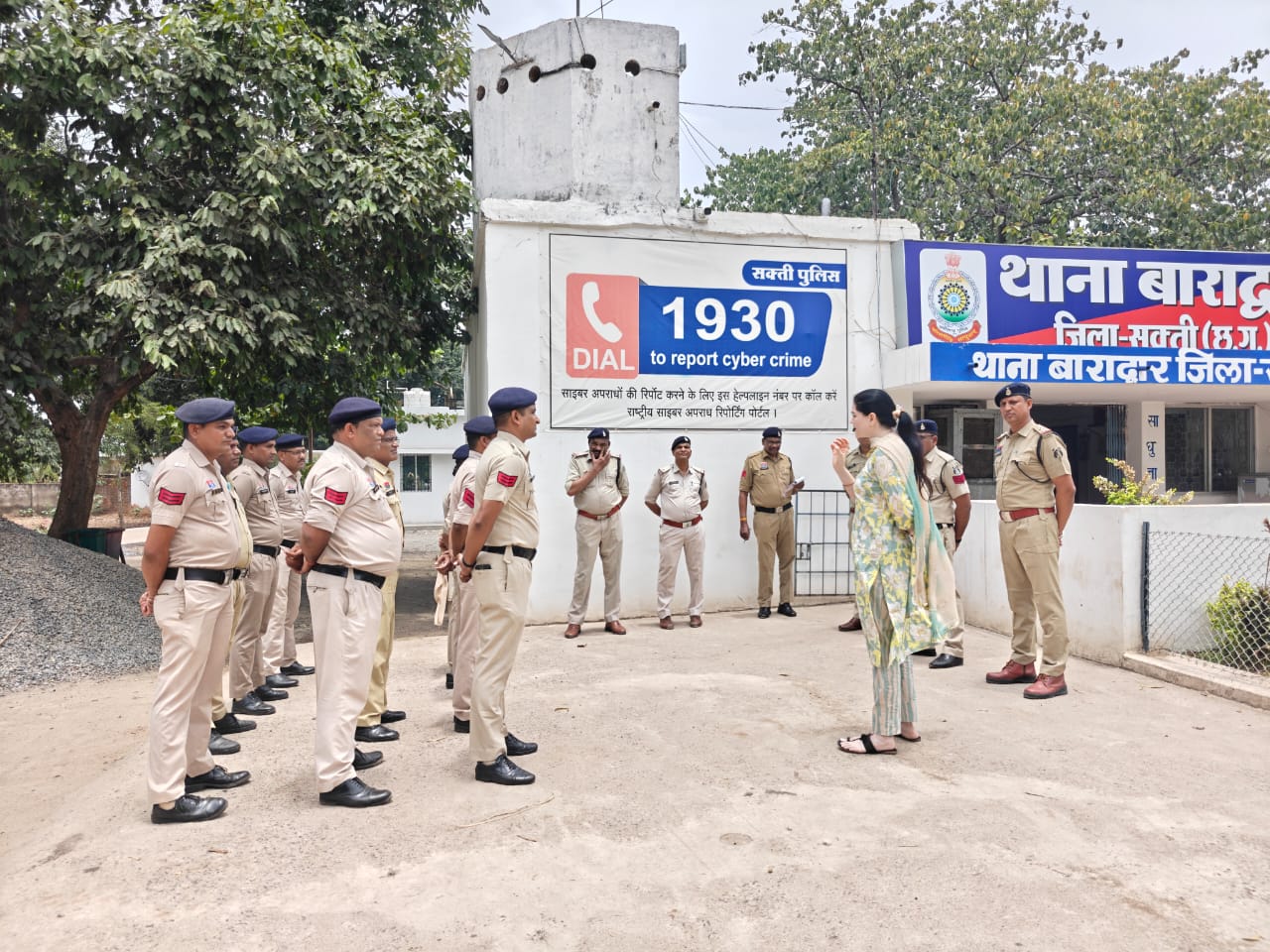 इस दौरान अनुविभागीय पुलिस अधिकारी सक्ति मनीष कुंवर, थाना प्रभारी लखन पटेल एवं थाना बाराद्वार के अधिकारी कर्मचारी उपस्थित रहे। पुलिस अधीक्षक कार्यालय से रीडर प्रधान आरक्षक श्री शरद जगत, कांस्टेबल अश्विनी राठौर, किशन बरेठ एवं साइबर प्रकोष्ठ से प्रधान आरक्षण प्रेम राठौर उपस्थित थे।